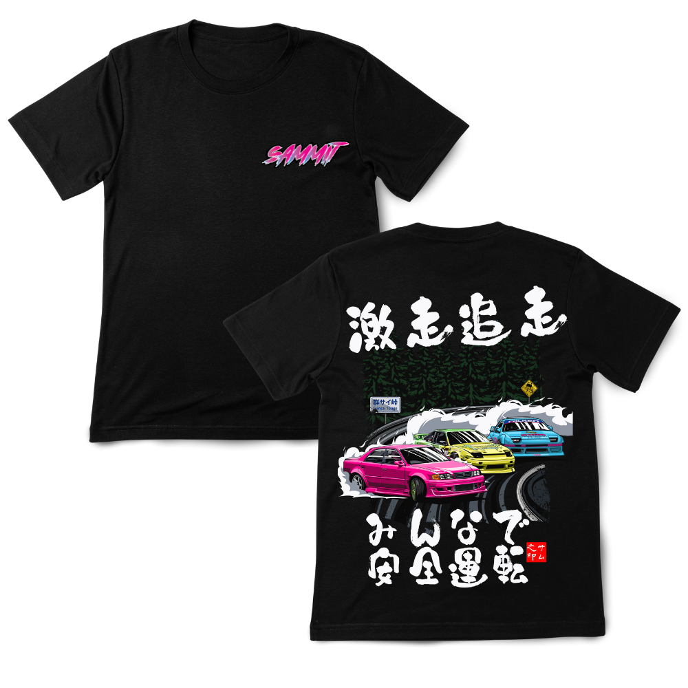 The Gunsai Touge T-shirt is a cotton tee inspired by the iconic Gunma mountain pass made famous by SAMMIT’s unforgettable Gunsai touge session.