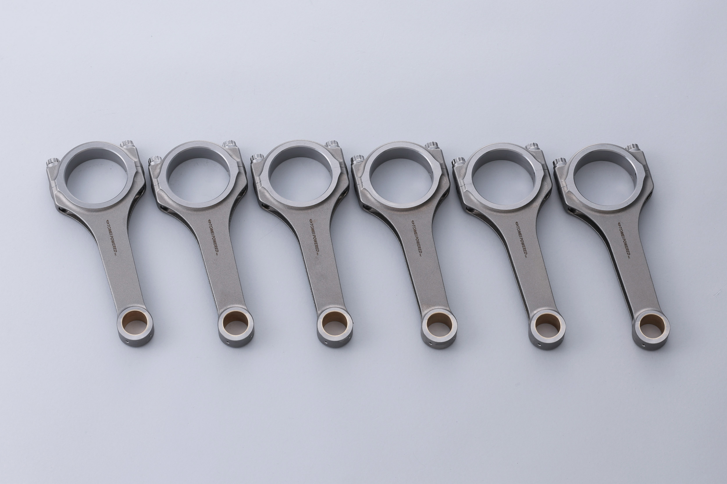 The selection process between both I-Beam & H-beam design is usually decided upon the weight, buckling strength & production costs for the conrods. We have designed & made conrods for Nissan RB,SR,VQ, Mitsubishi 4G, Subaru EJ & also for Toyota 3S, 1J & 2J engines. We chose to aim for overall strength while maintaining a light weight design.
